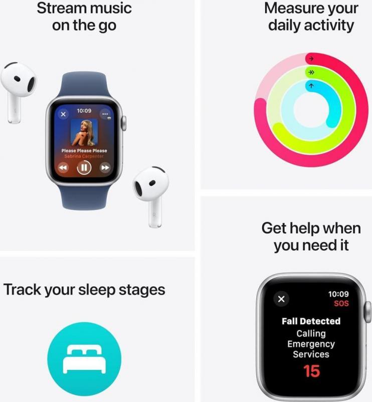 Apple Watch SE оснащены ярким дисплеем Retina LTPO OLED с разрешением 324 x 394 пикселей, обеспечивающим четкость изображения и насыщенные цвета даже при ярком солнечном свете благодаря яркости до 1000 нит. Сенсорный экран позволяет быстро и удобно управлять всеми функциями устройства. Встроенные датчики, такие как оптический датчик сердца второго поколения, акселерометр и гироскоп, обеспечивают точность измерений частоты сердечных сок...